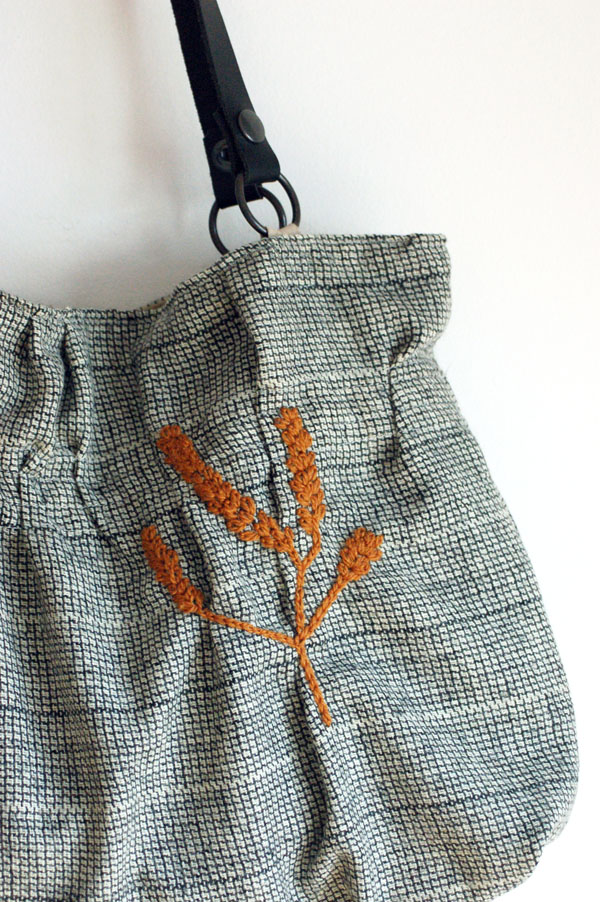 This is the last piece for Autumn/Winter 2011/12 Collection! Inspired on dunes, this shirred bag is made of black-and-white pied de poule tweed, with a plant (cottonweed, Otanthus maritimus) embroidered on camel wool. It has a pocket on the inside and black leather straps. This is one of my favorites! Hope you like it, it's available at the Shop!