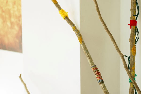 Este ano a nossa decoração natalícia é muito simples. Um molho de ramos de choupo amarrados por lãs de várias cores, é a nossa árvore de Natal minimalista e à prova de gato (pelo menos pouco interessante do ponto de vista felino, porque para além das luzes não pendurámos enfeites). O resto foi feito com os velhinhos cristais de gelo de madeira colados nas janelas, e muitas velas.